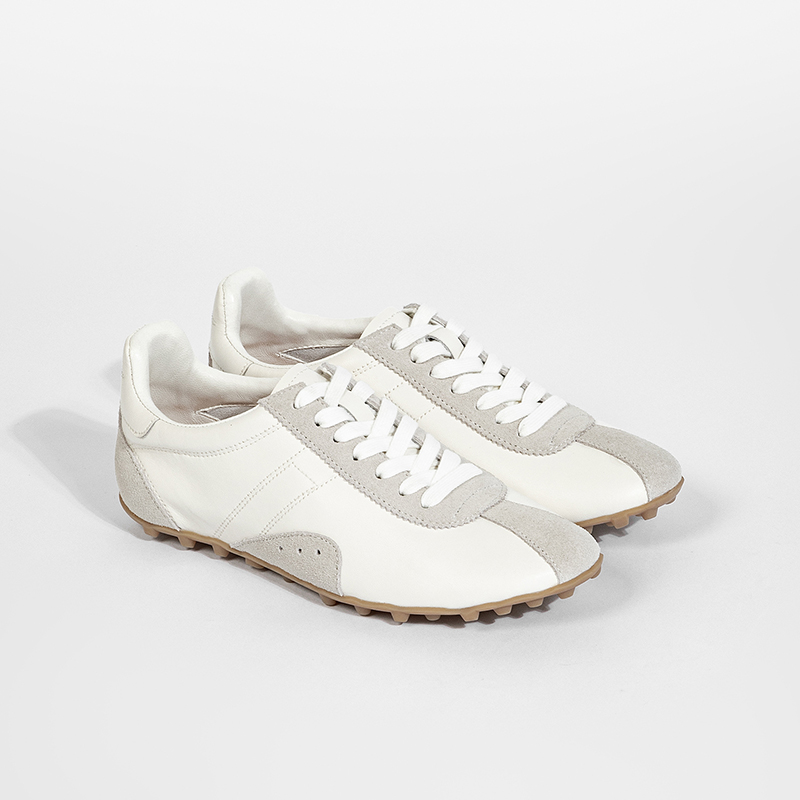 Fabric and calf leather upper